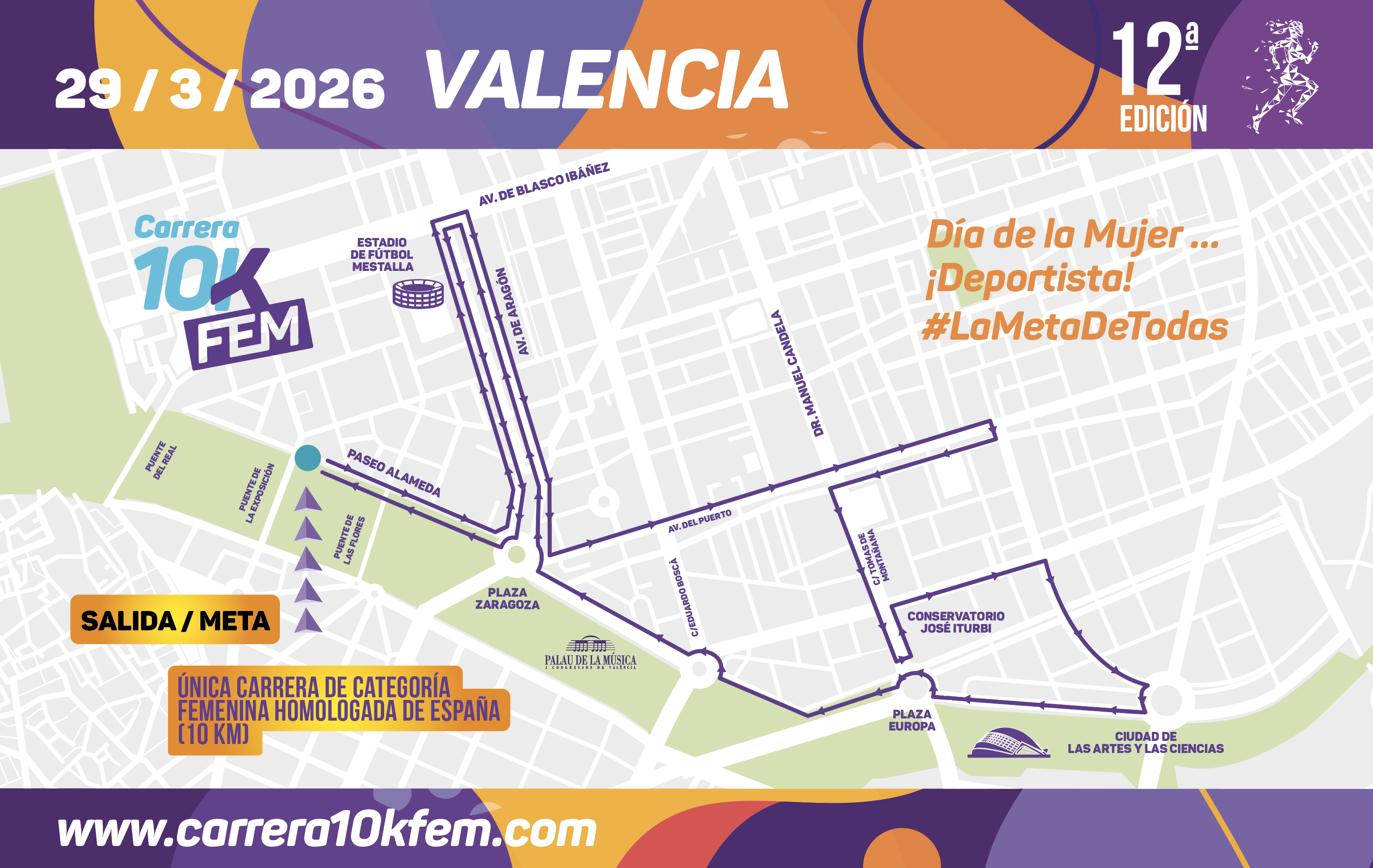 RECORRIDO DE LA CARRERA 10KFEM ÚNICO EN VALENCIA